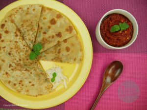 Mooli ka paratha with Kashmiri Lal mirch ki chutni