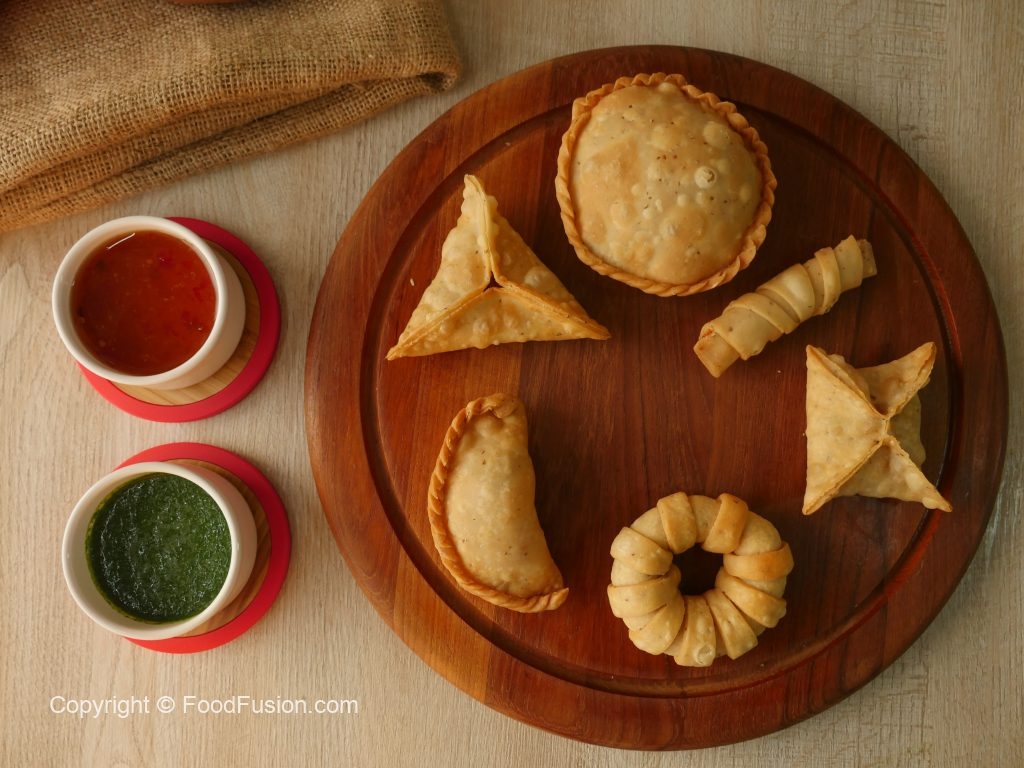 Filling rakh ker pani laga lein aur ek rolled dough rakh ker press karein aur edges ko twist ker lein.
