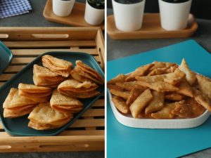 -In a wok,heat cooking oil & fry on medium flame until golden & crispy.