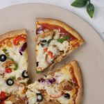 -On pizza base,add & spread pizza sauce,cheese,cooked fajita chicken,red bell pepper,capsicum, onion,cheese,black olive & bake in preheated oven at 180C until cheese melts (8-10 minutes).