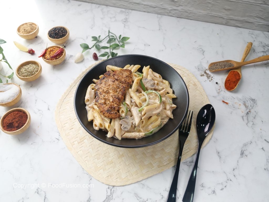 -On a cast iron pan,add cooking oil,marinated cajun chicken (thawed overnight) & cook on low flame from both sides until done (3-4 minutes each side).