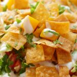 In serving dish,add boiled chickpeas,yogurt,red chili crushed,salt,prepared pickle vegetables,potatoes and yogurt.