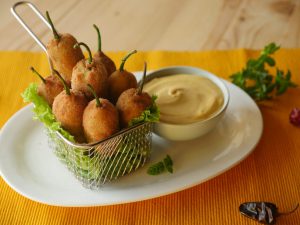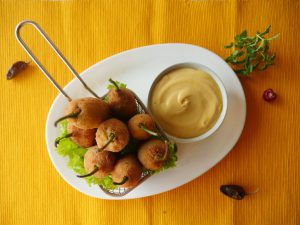 Coat in all-purpose flour and dip into beaten eggs then coat in bread crumbs then again dip into beaten eggs and coat in bread crumbs (Makes 20-25).