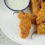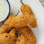 -Stuff green chillies with prepared pickle mixture then dip in prepared pakora batter & coat with nimco sev.