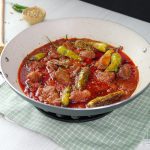 -Fried stuffed chillies ko mutton gravy mein dal dein aur lemon juice dal ker dhak dein aur halki ancch per 3-4 minutes kliya paka lein.