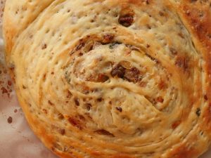 Dough per maida chirak dein aur rolling pin ki madad sa bail lein (roll as thin as possible).