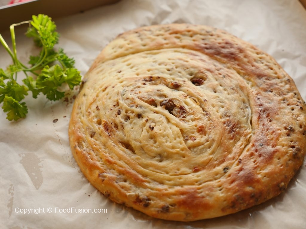 In frying pan,place afghani fateer qeema,press gently and prick with fork and brush milk,cover and cook on very low flame for 10-12 minutes then flip and apply melted butter and cook from both sides until done.