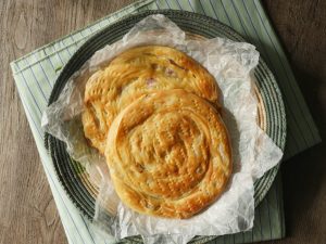 Pyaz filling dal ker pheela lein aur swiss roll ki tarhan roll ker lein.