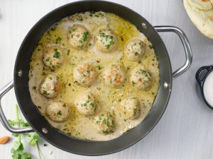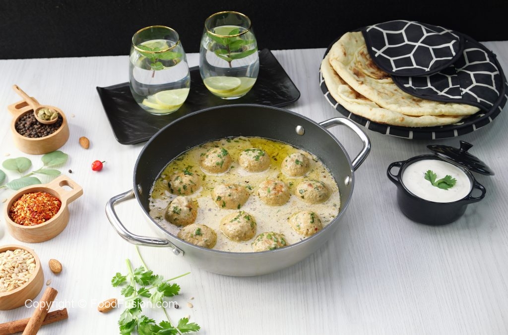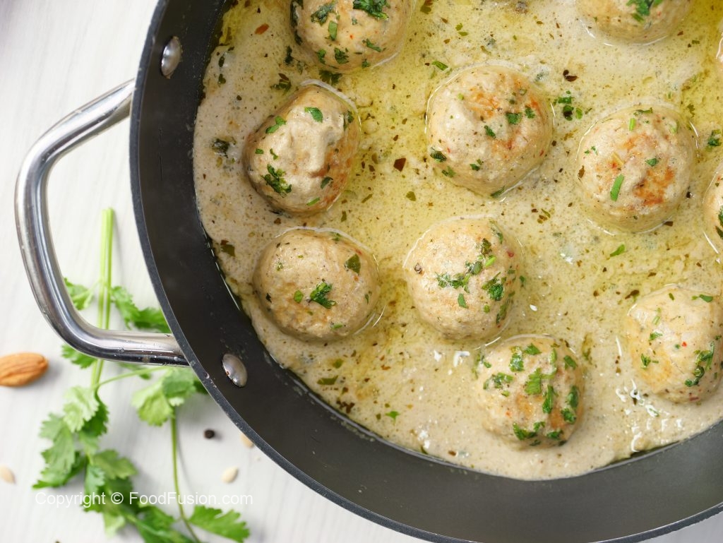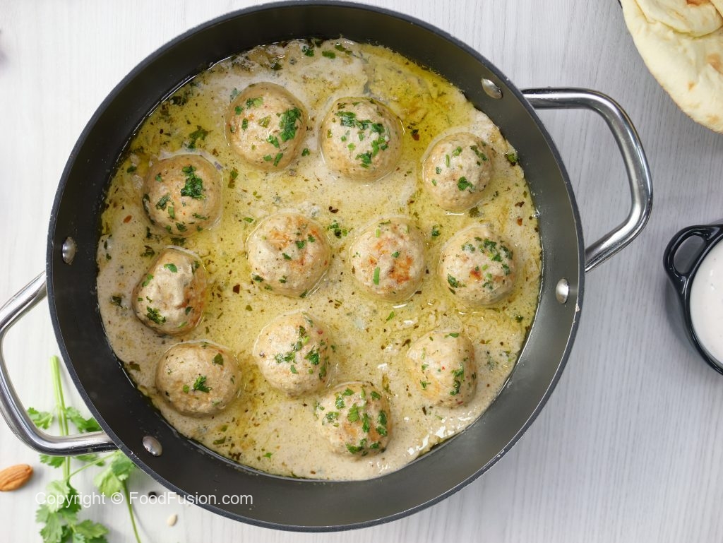 -In a wok,add cooking oil,prepared chicken koftay & fry on low flame from all sides until light golden & set aside (makes 12).