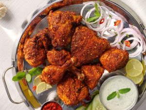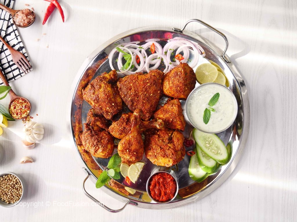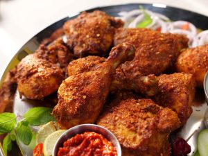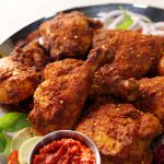 -Place marinated chicken pieces on oven grill & sprinkle prepared spice mix.