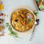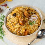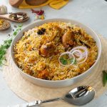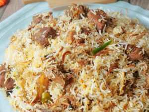 Add & spread tomato & onion mixture,boiled rice,kewra essence and cooking oil,cover & cook on high flame for 4-5 minutes then steam cook on low flame for 8-10 minutes.