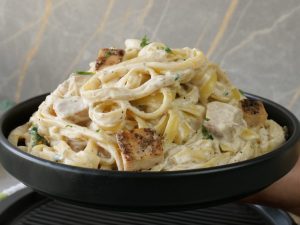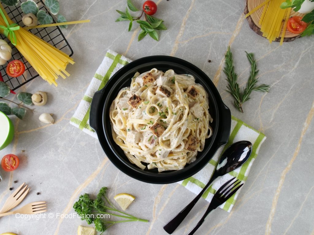 Alfredo sauce pasta strips is one of the easiest and comforting pasta dishes to make at home. Everyone will love this creamy and rich Alfredo sauce with grilled chicken and perfectly combined with Mario’s Alfredo strips #HappyCookingToYou #FoodFusion #Marios #MariosPasta