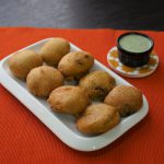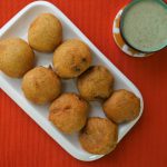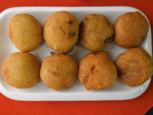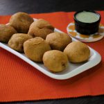 Grease hands with oil,take a mixture and make a flat round balls and coat in prepared gram flour batter.