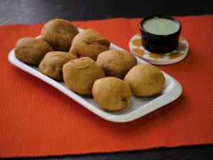 Haathon ko oil sa grease karein aur mixture ko lein aur flat round balls bana lein aur tayyar besan ka batter mein ache tarhan coat ker lein.