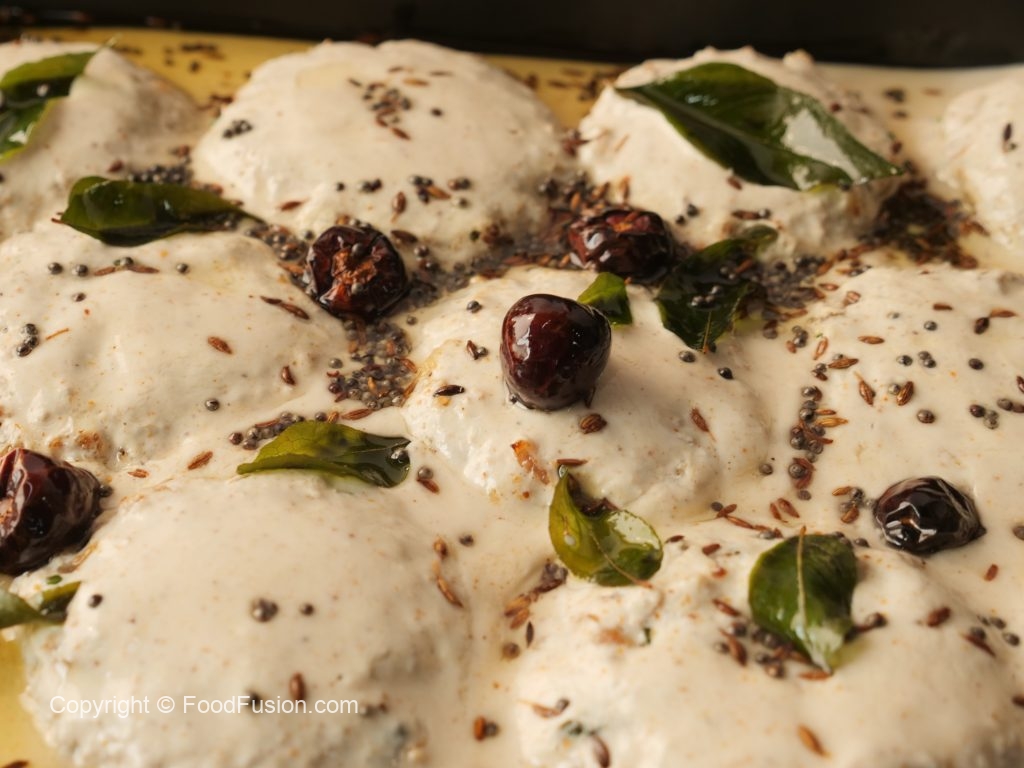 -In a small frying pan,heat cooking oil,add mustard seeds,button red chillies,curry leaves,cumin seeds & mix well.