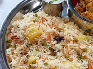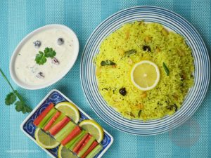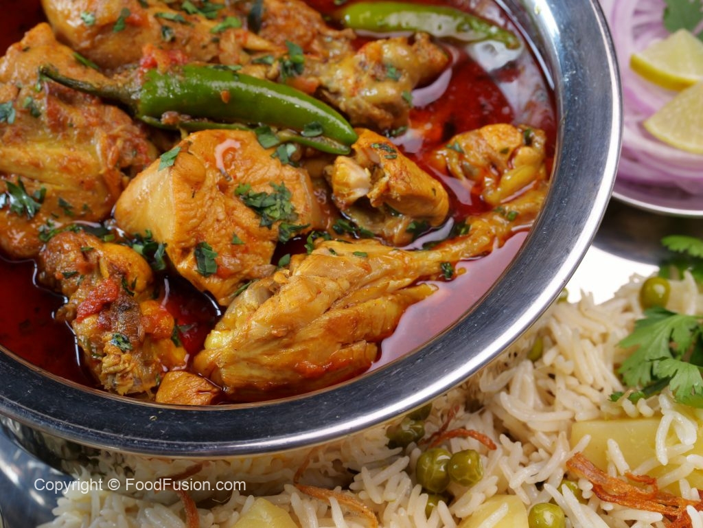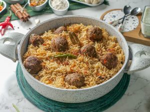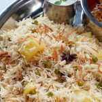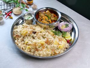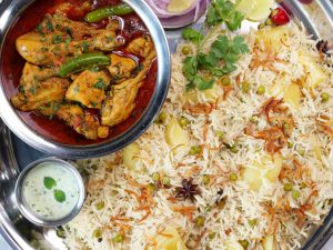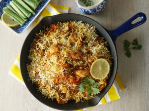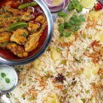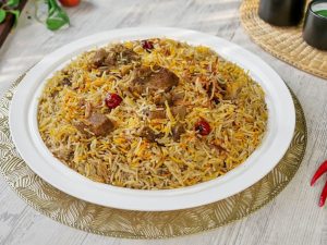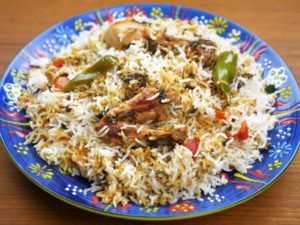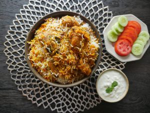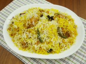 -Garnish with fried onion & serve with chicken shorba,onion & raita!
