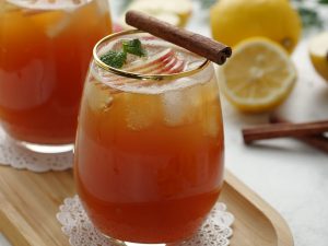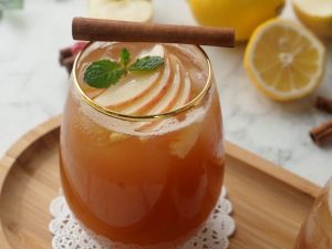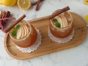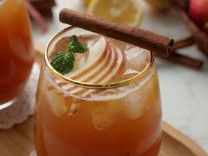 Garnish with apple slices,mint leaves,cinnamon stick & serve!