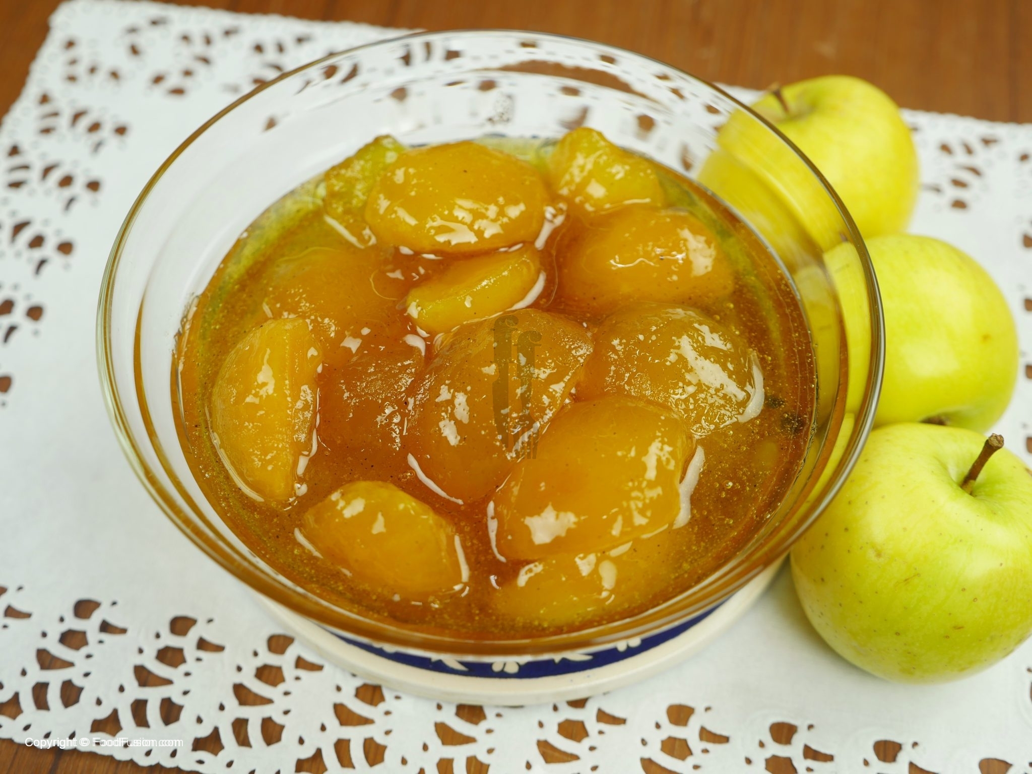 Cover and cook until apples are soft and sugar syrup is thick. (Approx. 30-35 minutes) and let it cool.