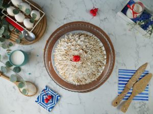 Add vanilla essence & beat until stiff peaks form then transfer to a piping bag & set aside.