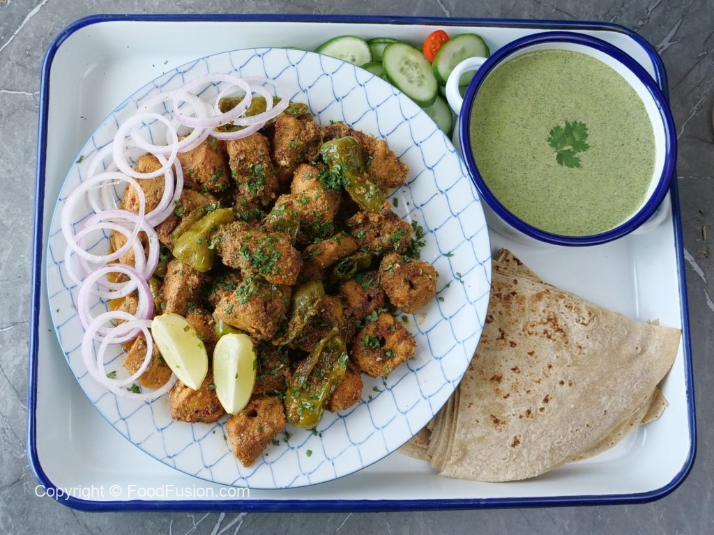 -Garnish with onion rings,lemon wedges & serve with dahi podina chutney!