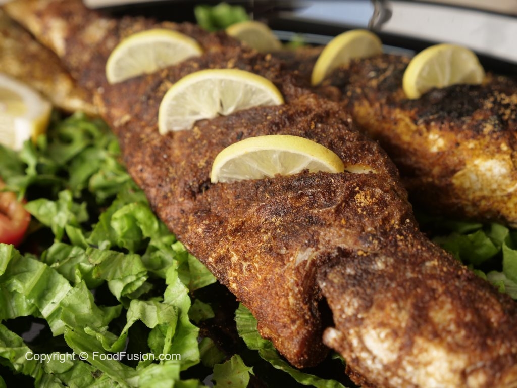Sprinkle prepared spice mix inside and all over the fish & rub evenly (reserve remaining for later use) and let it rest for 10-15 minutes.