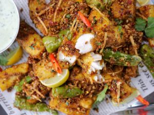 -Bowl mein fried fish,tayyar balochi tikka masala,fried hari mirchein & lehsan,lemon juice,adrak aur hara dhania dal ker dhak dein aur 5 minutes kliya rest dein & serve karein!