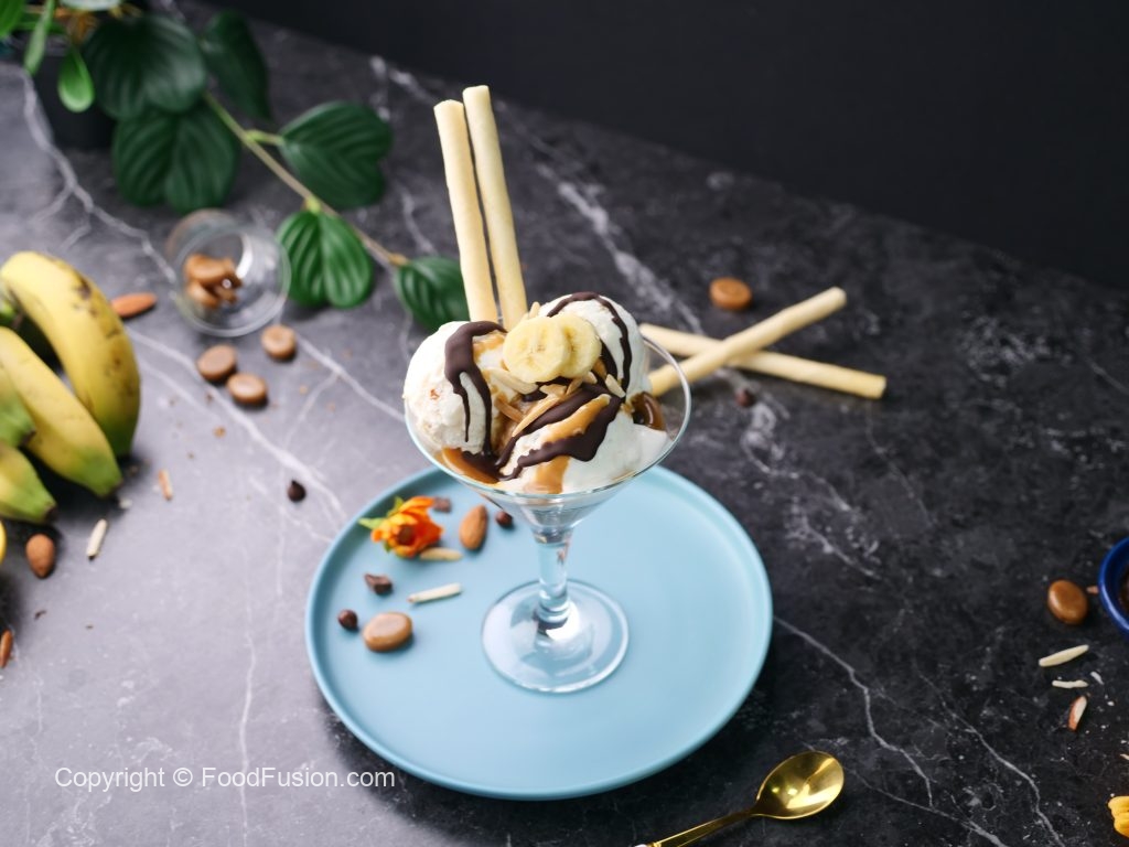 Bananas + toffee + ice cream + Chocolate = the perfect Banoffee Ice Cream Sundae recipe! #Hico #icecream #FoodFusion #HappyCookingToyou