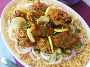 -In a serving dish,add boiled rice,prepared chicken mince & top it with fried egg & serve!