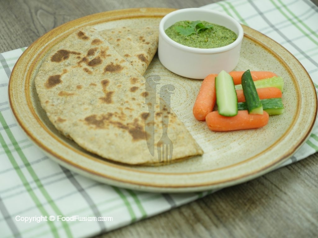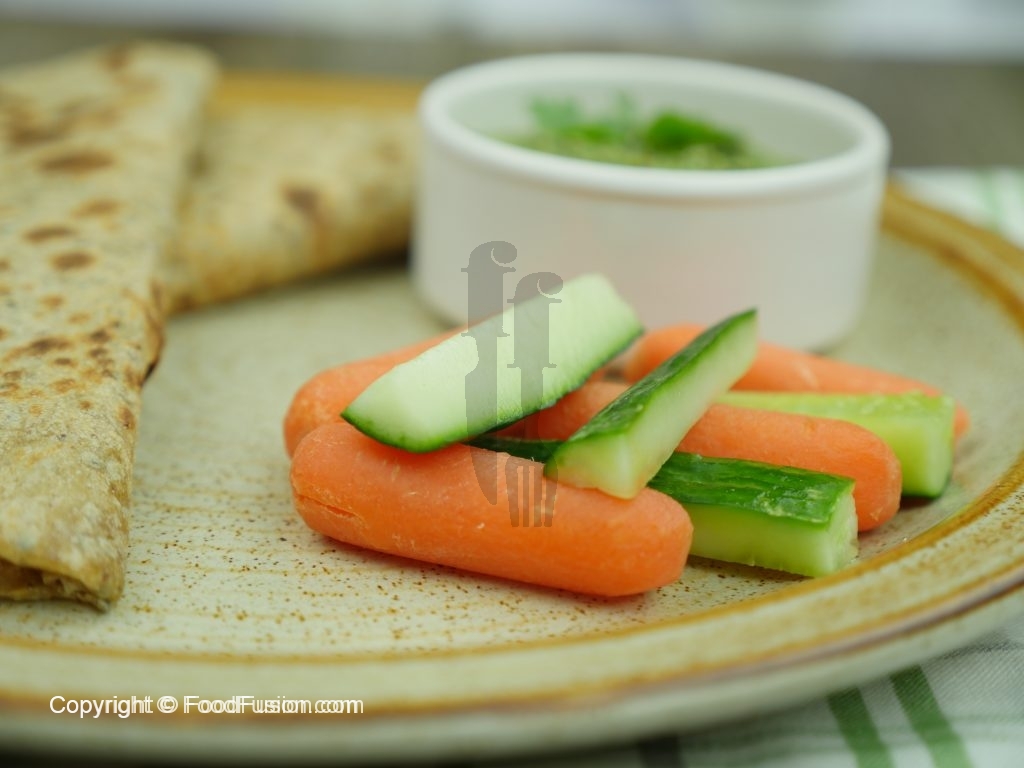 In blender,add garlic,chickpeas,cumin seeds,pink salt,coconut oil,lemon juice,green chilies,fresh coriander, mint leaves and blend until well combined.