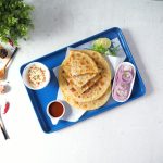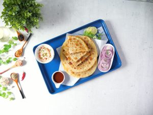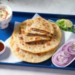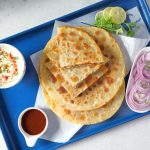 -Heat griddle & fry paratha on medium flame from both sides with clarified butter (makes 5) & serve!