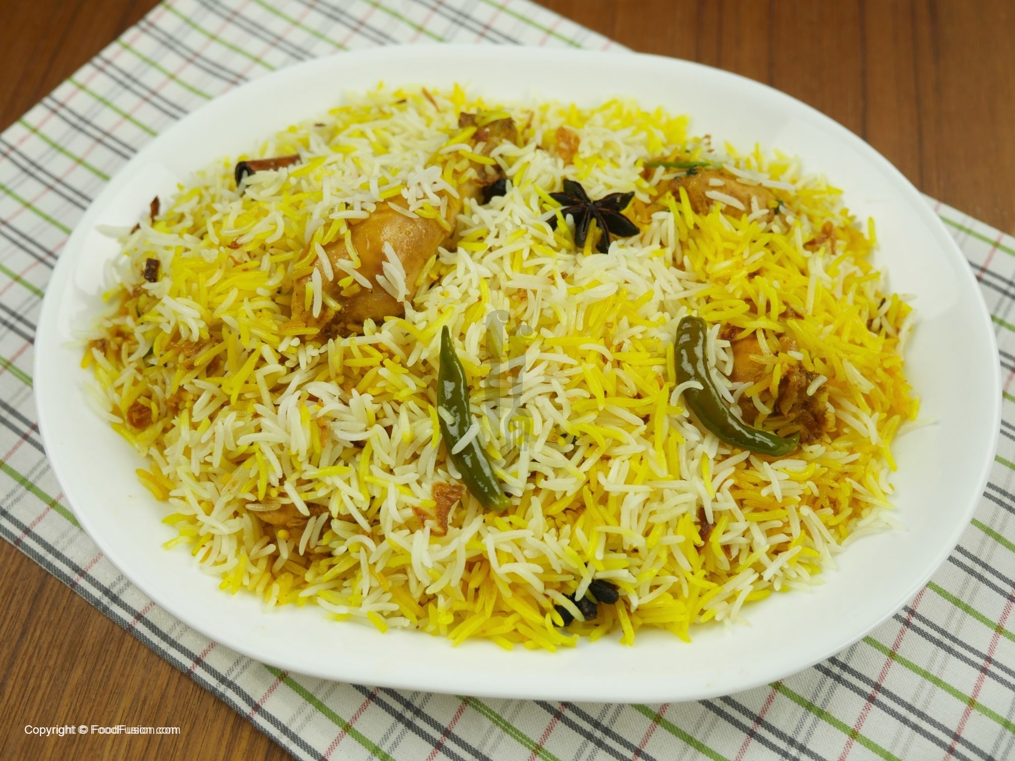 Pan main sab se pehle chand qatray tel shamil karein, phir is pe tamatar ke slices lagaye, is pe paki hue chicken rakhein, phir hara dhania aur mirchein shamil karein, phir chawal ki the uper se chicken ka bacha hua tel, pani aur rang ka mixture, tali hue piyaz aur kewra shamil karke 20-25 min dump e rakh dein.