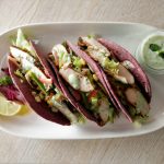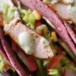 Tacos mein salad,chicken slices aur raita/green yogurt sauce dal ker serve karein.
