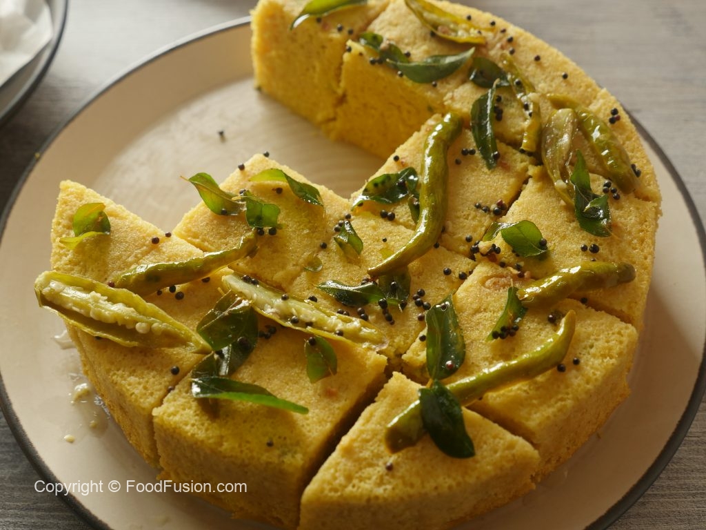 Square pieces mein cut ker lein aur dhokla per tadka dal ker serve karein.