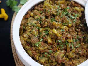 -Beef qeema dal ker ache tarhan mix karein aur darmiyani ancch per 5-6 minutes kliya paka lein.