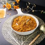 -Now add dissolved mixture,mix well & cook on low flame until it dries up (2-3 minutes).