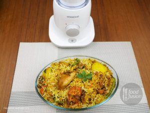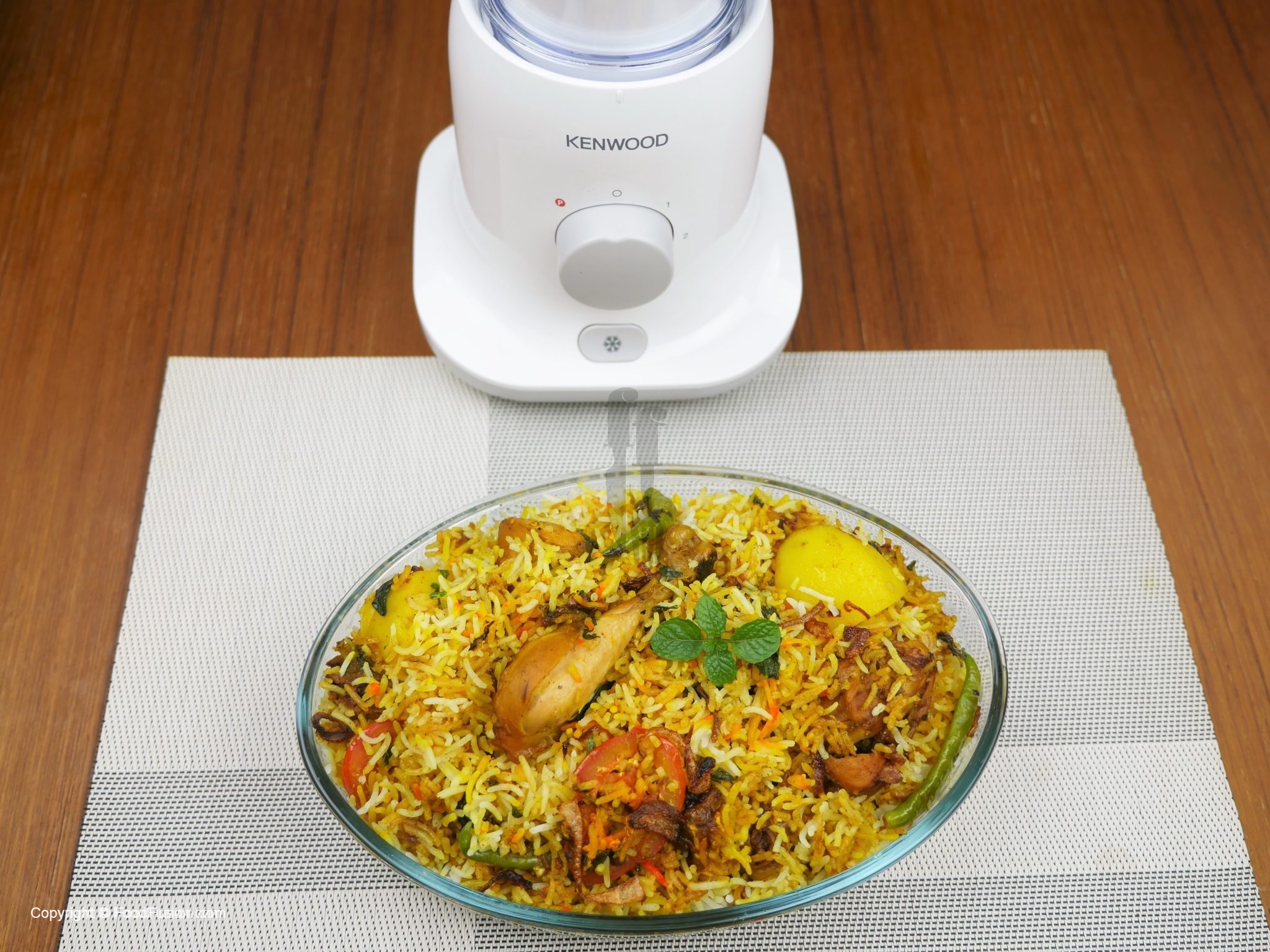 Grinded masala mein namak,laung,badi elaichi,sabut kali mirch,zeera,aalo bukhara,haldee powder,dar chini,hari elaichi,tez paat aur lal mirch powder dal ker ache tarhan shake ker lein.Biryani masala tayyar hai,side per rakh dein.