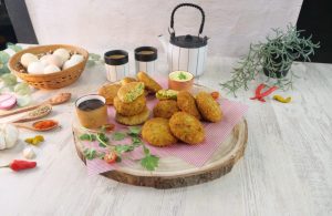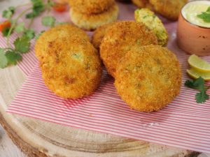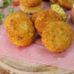 -Coat with all-purpose flour then dip into whisked eggs & coat with breadcrumbs.