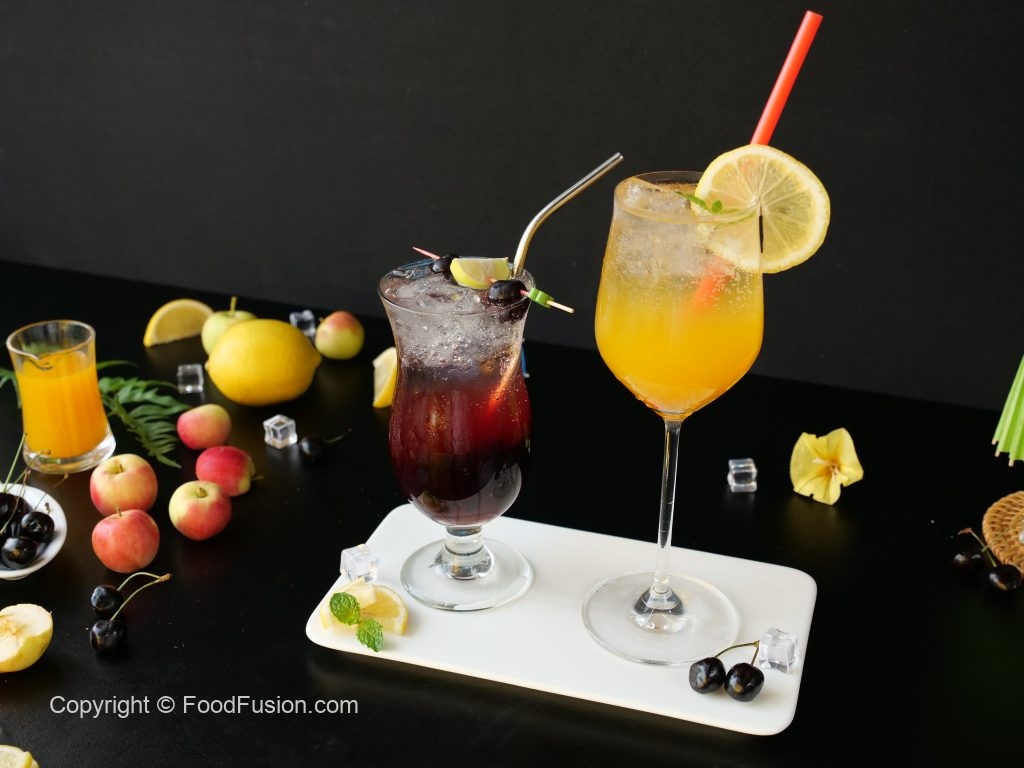 Kick back and relax with these cool, refreshing Bubbly Summer drinks (Mocktails) with 7up: Cherry Summer Cooler and 7up Sunshine. You can easily make them at home to beat the heat!