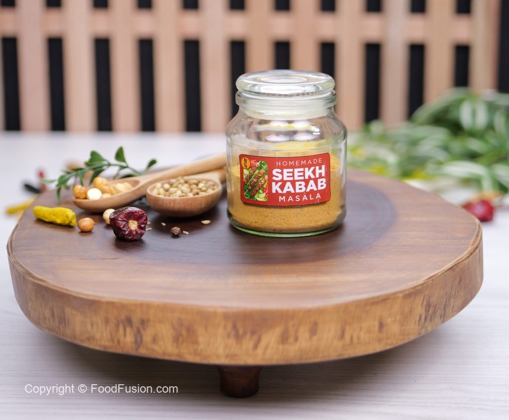 -Add pink salt,red chilli powder,citric acid,turmeric powder & grind well.Homemade seekh kabab masala is ready!