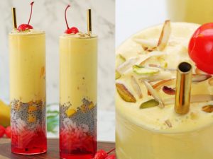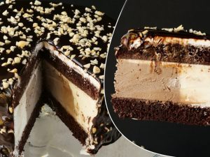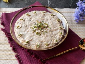 Garnish with caramel sauce,caramel crunch & serve chilled.