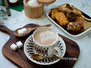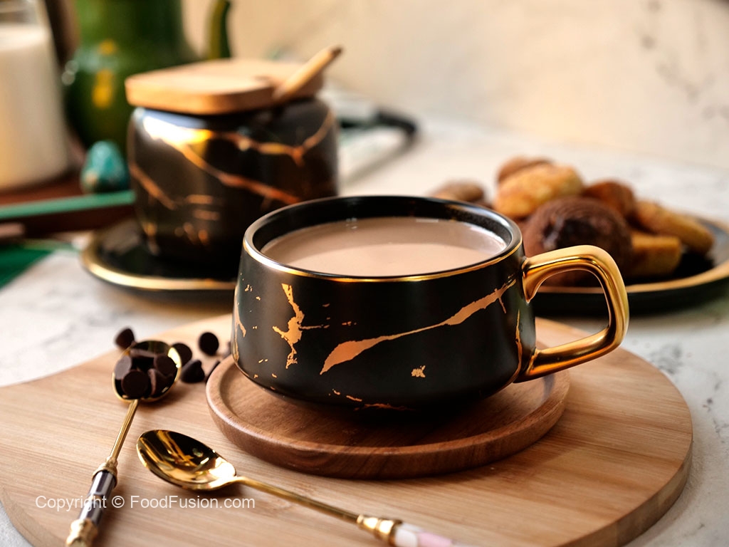 Saucepan mein pani dal ker ubal lein,tea leaves,cocoa powder aur drinking chocolate powder dal ker ache tarhan whisk ker lein.