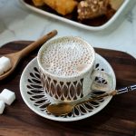 Saucepan mein doodh aur cream dal ker ache tarha mix karein aur ubal anay ka bad halki ancch per 4-5 minutes kliya boil ker lein aur whisk ker ka frothy ker lein & side per rakh dein.