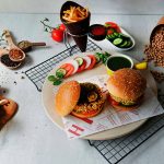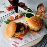 Top bun ki side per green chilli sauce dal ker pheela lein aur patty ka upper rakh ker burger bana lein.