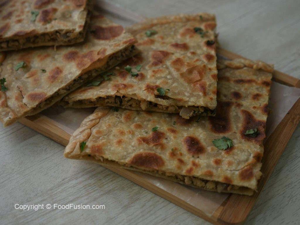 Dough ko dubara ghond lein,haath ok oil sa grease karein aur chota dough la ker ball bana lein,atta chirak dein aur rolling pin ki madad sa bail lein.