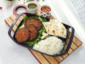 -In a bowl,add beef mince,fat,ginger garlic paste,dried pomegranate seeds,red crush chilli,cumin powder,pink salt,carom seeds,black pepper powder,egg,maize flour,tomatoes,green chilli,fresh coriander, onion & mix until well combined.