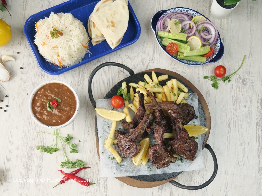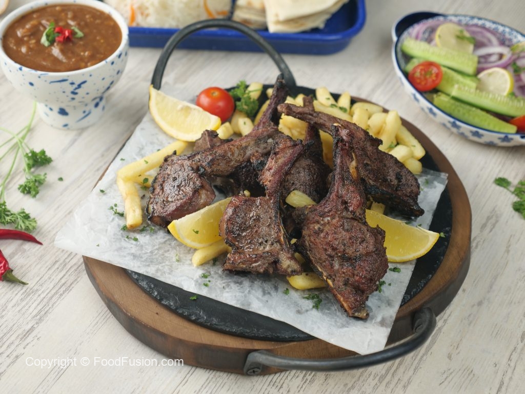 Bowl mein mutton chops,namak,kali mirch powder,zeera powder,adrak lehsan paste aur kacha papita paste dal ker ache tarhan mix karein aur dhak ker 4-6 hours klliya refrigerator mein marinate ker lein.