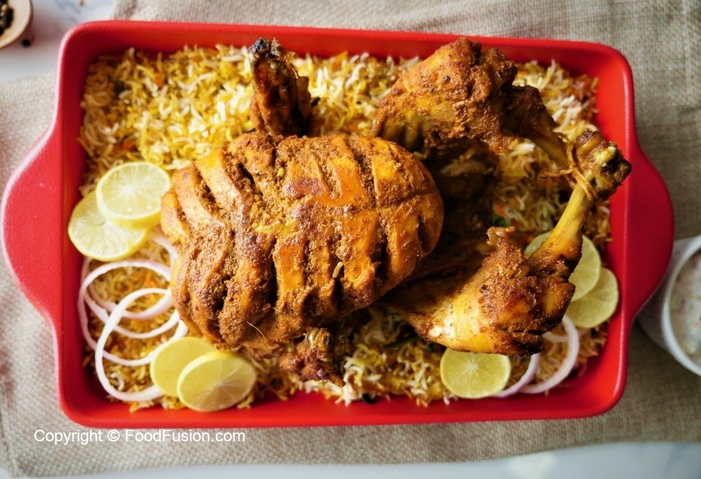 Pot mein tayyar gravy aur boiled chawal dal ker pheela lein,zarda ka rang,podina,hara dhania,hari mirch aur fried charga dal ker dhak dein aur 8-10 minute kliya dum per rakh dein & serve karein!