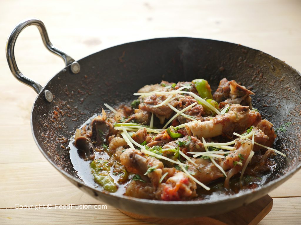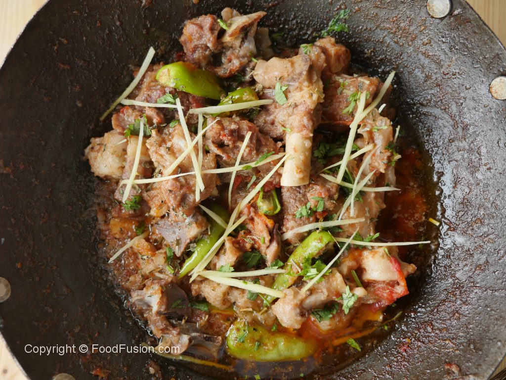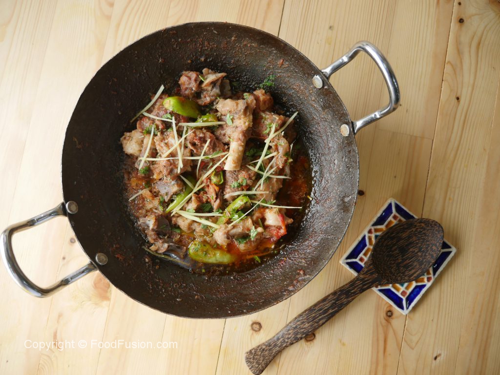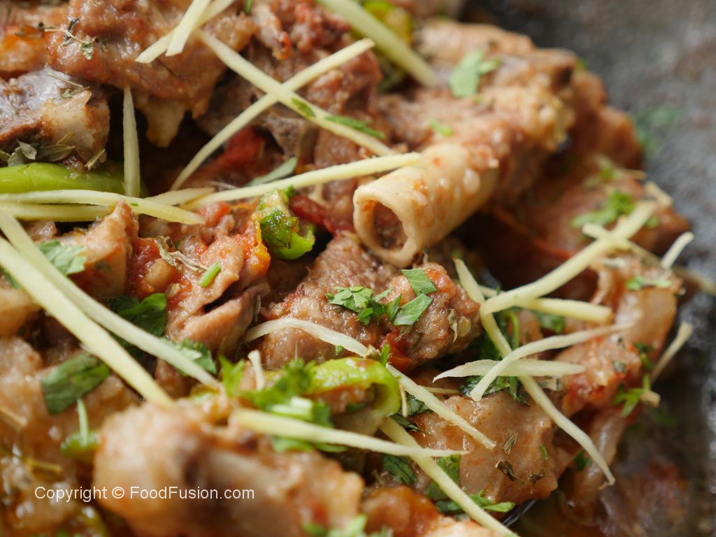 Karhai mein mutton with bones,fat aur namak dal dein.