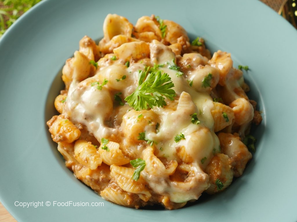 Mozzarella cheese,cheddar cheese aur fresh parsley dal ker dhak dein aur halki ancch per cheese melt hunay tak paka lein (approx. 2-3 minutes).