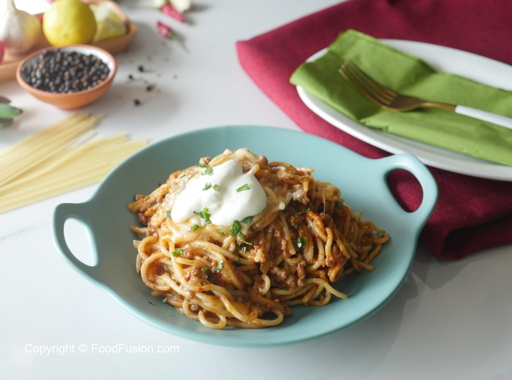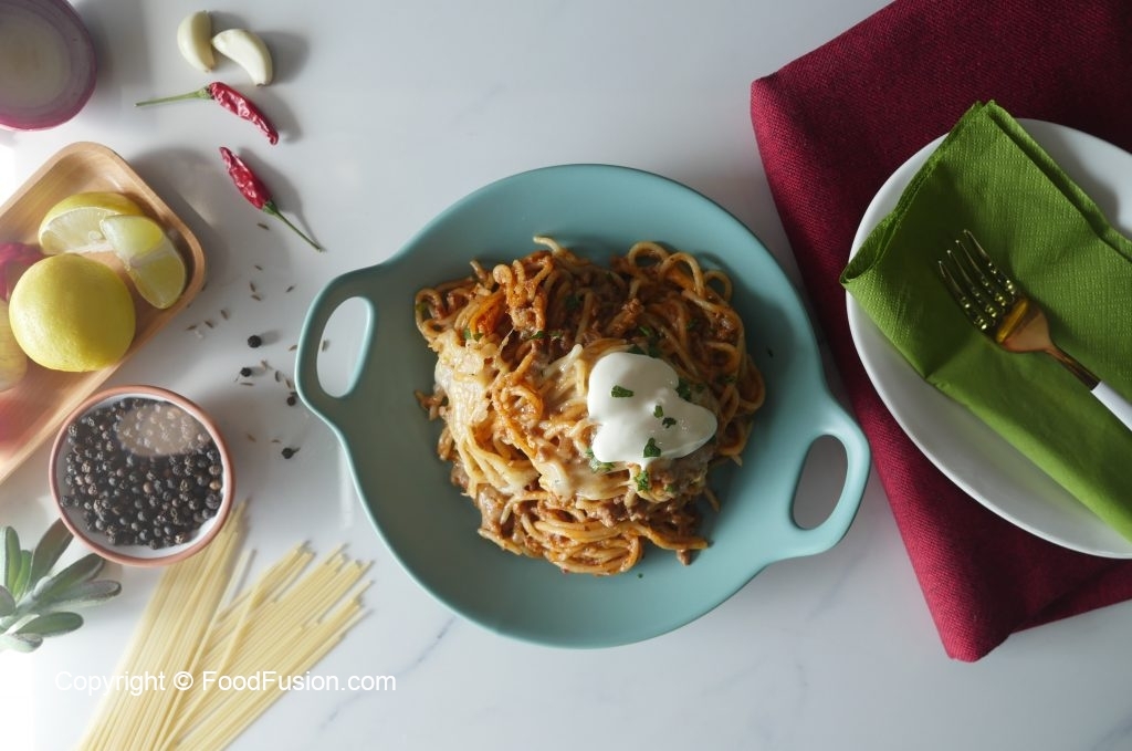 A deep dive in Cheesy Taco Spaghetti . A must try recipe. #HappyCookingToYou #FoodFusion